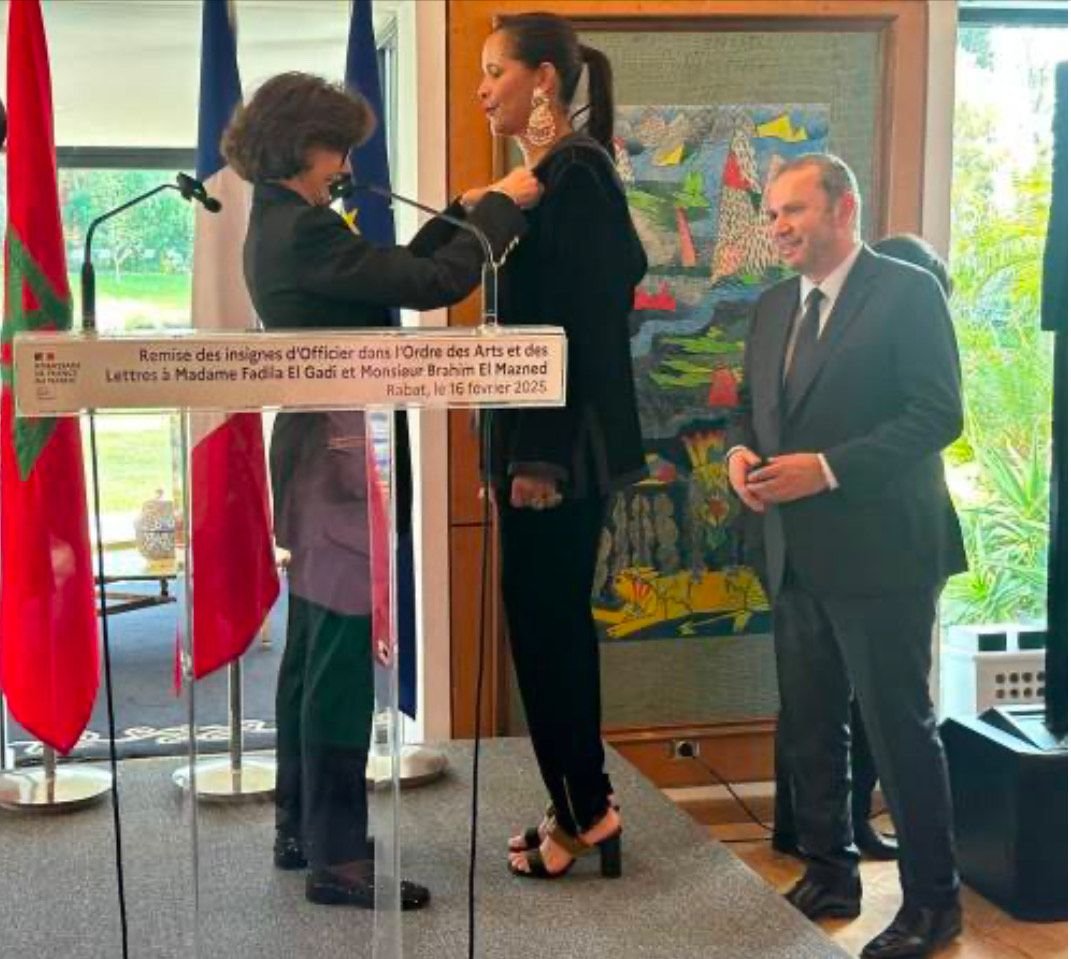يعدّ حصولها على وسام ضابط الفنون والآداب من الجمهورية الفرنسية محطة بارزة في مسيرتها، حيث تعتبره اعترافًا ليس فقط بعملها، ولكن أيضًا بأهمية الحرف التقليدية كوسيلة للتعبير الثقافي والفني. وعن هذا التكريم تقول: “هذه الجائزة تذكّرني بالمسؤولية التي أحملها، بضرورة مواصلة الابتكار، ولكن الأهم من ذلك، الحفاظ على فن التطريز التقليدي المغربي ونقله للأجيال القادمة.”